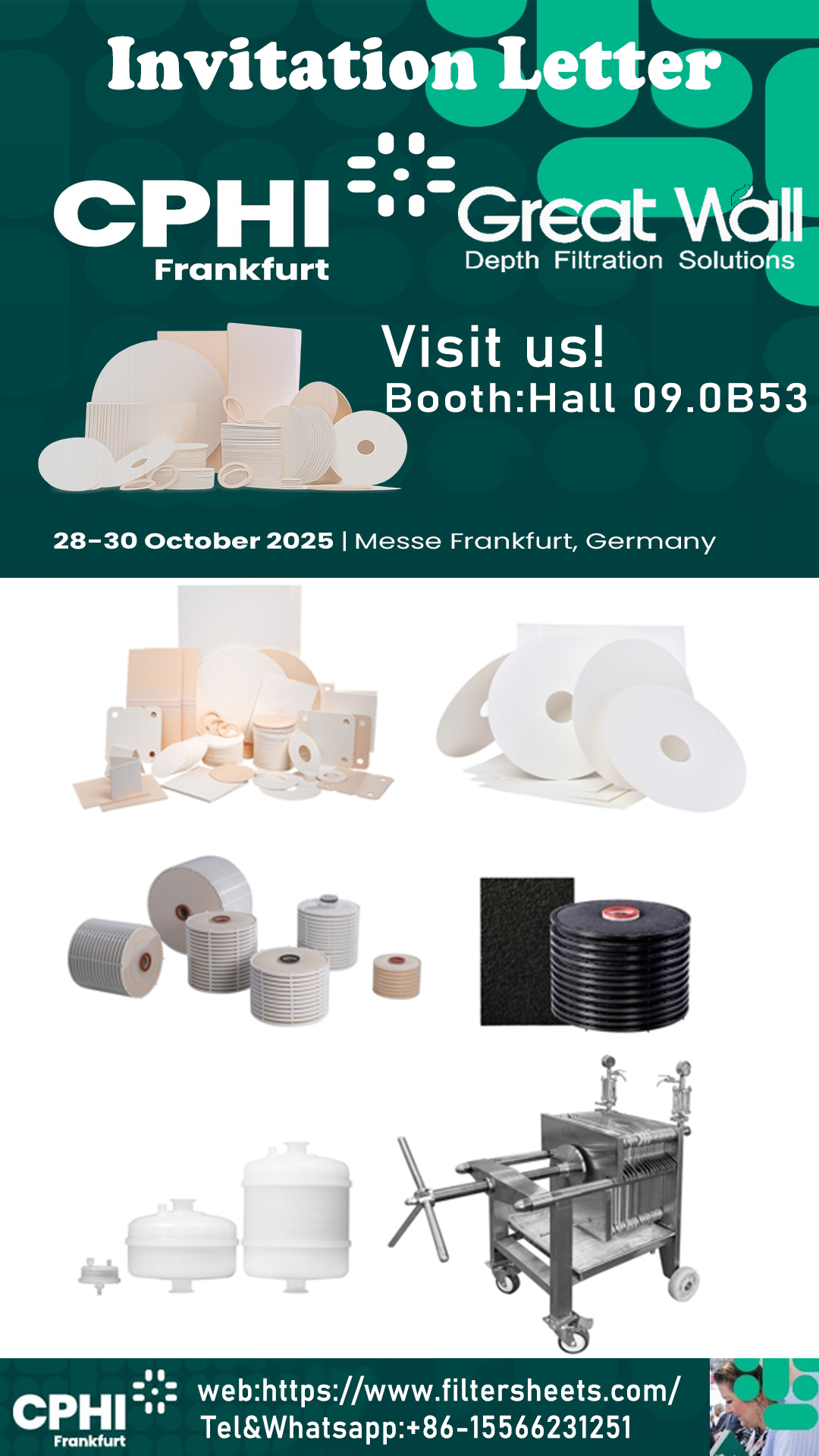 Visit Great Wall Filtration at CPHI Frankfurt 2025 to explore how our filtration expertise can empower your success.